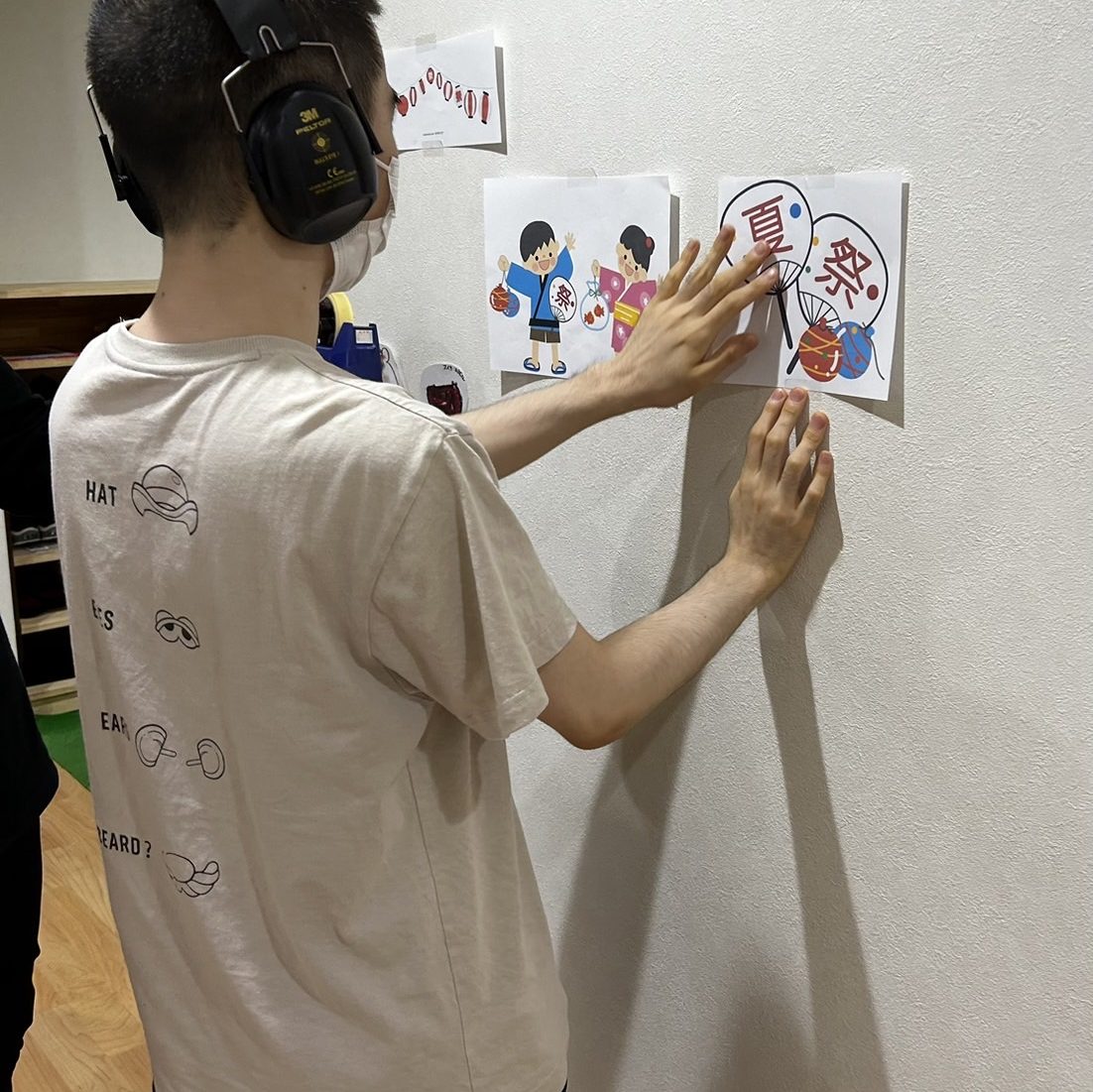 壁の飾りもみんなで作りました。
